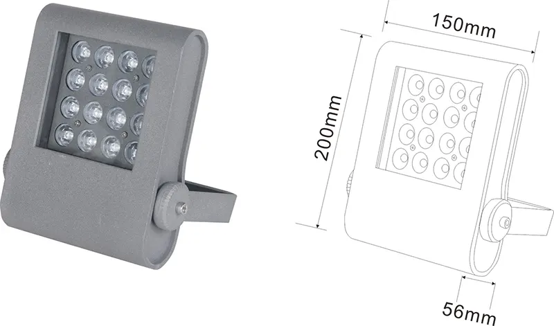 | Välistingimustes üleujutus | Con-TGD03-1 | 200*150*56mm | 16W | Materjal: alumiinium+karastatud klaas Sulgude tüüp: reguleeritav IP: IP67 Värvitemperatuur valikuline: 3000K/4000K/6500K RGB / DMX512 RGBW / DMX512 Tavaline hall, kohandatav vastavalt hoonefassaadi värvile |